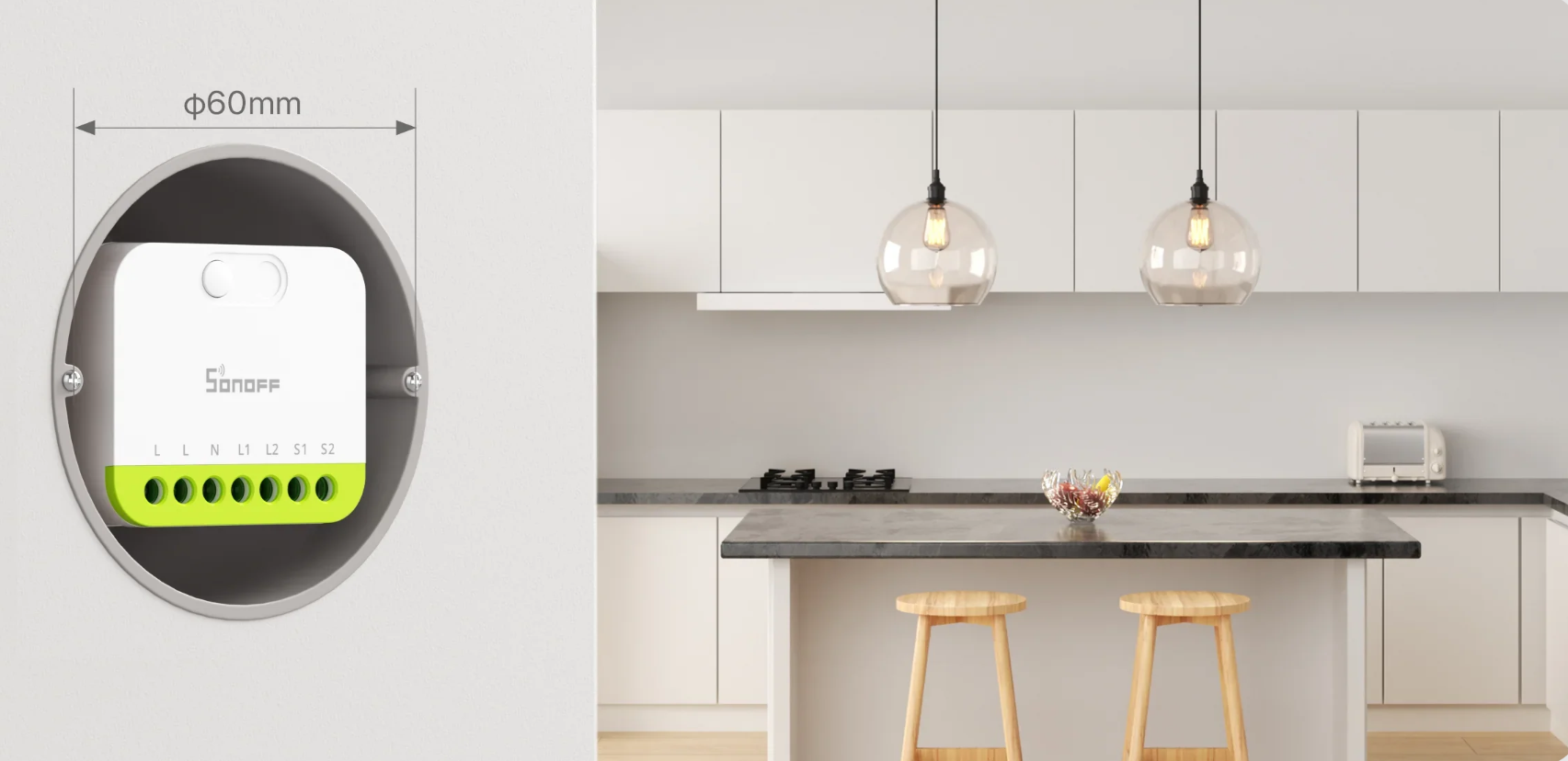 Zaprojaktowany do bezproblemowej instalacji za przełącznikami ściennymi, może obsługiwać łączne obciążenie do 16A, oferując elastyczność dla wielu konfiguracji.