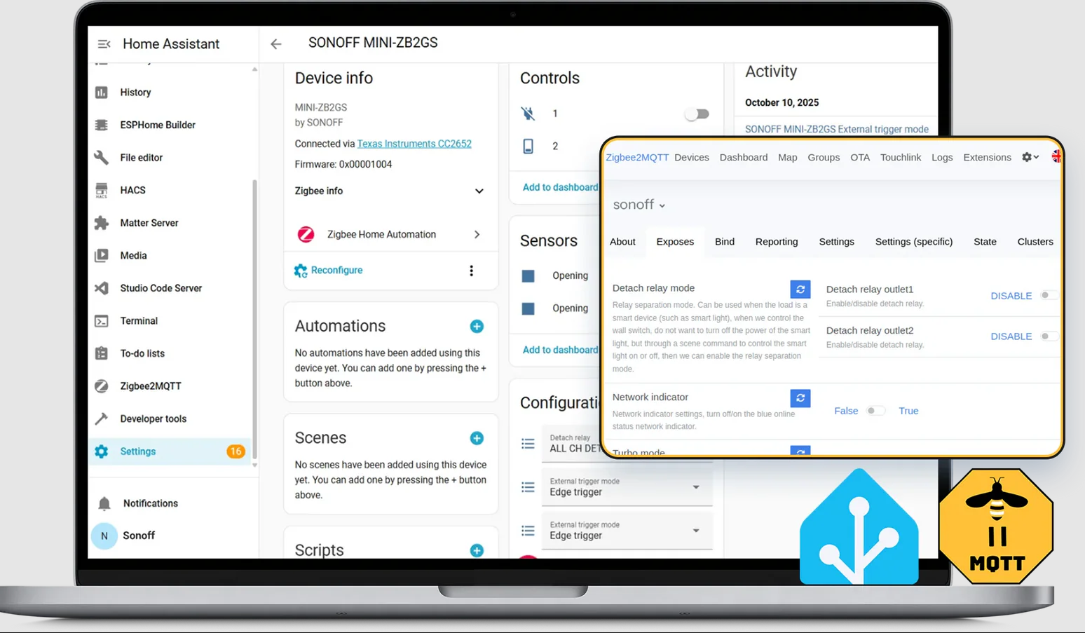 Dzięki standardowi Zigbee 3.0 moduł współpracuje z otwartoźródłowymi platformami automatyki domowej oraz popularnymi hubami Zigbee.