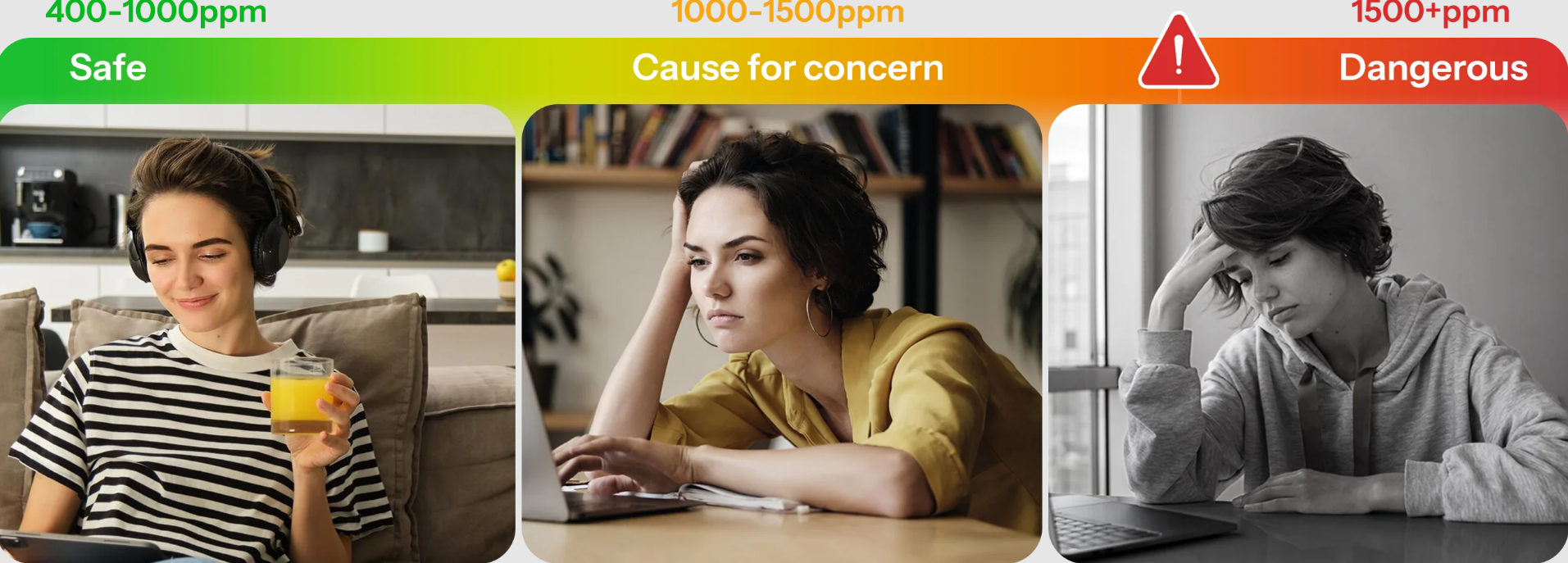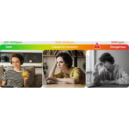 Podwyższony poziom CO2 może powodować senność i obniżoną koncentrację. Monitorowanie pomaga utrzymać świeże powietrze i lepsze samopoczucie.