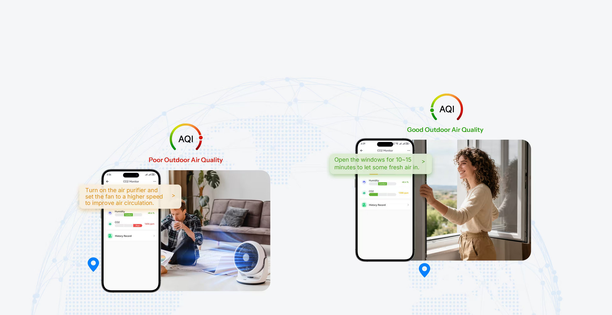 Przeanalizuje poziom CO₂ w Twoim pokoju oraz lokalny Wskaźnik Jakości Powietrza (AQI), a następnie dostarczy Ci bardziej ukierunkowane i skuteczne sugestie dotyczące poprawy jakości powietrza.