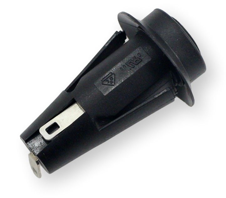 Obudowa panelowa umożliwia szybki i wygodny montaż bezpiecznika 5×20 mm w obudowach urządzeń elektronicznych, zapewniając łatwy dostęp serwisowy oraz bezpieczne mocowanie elementu.