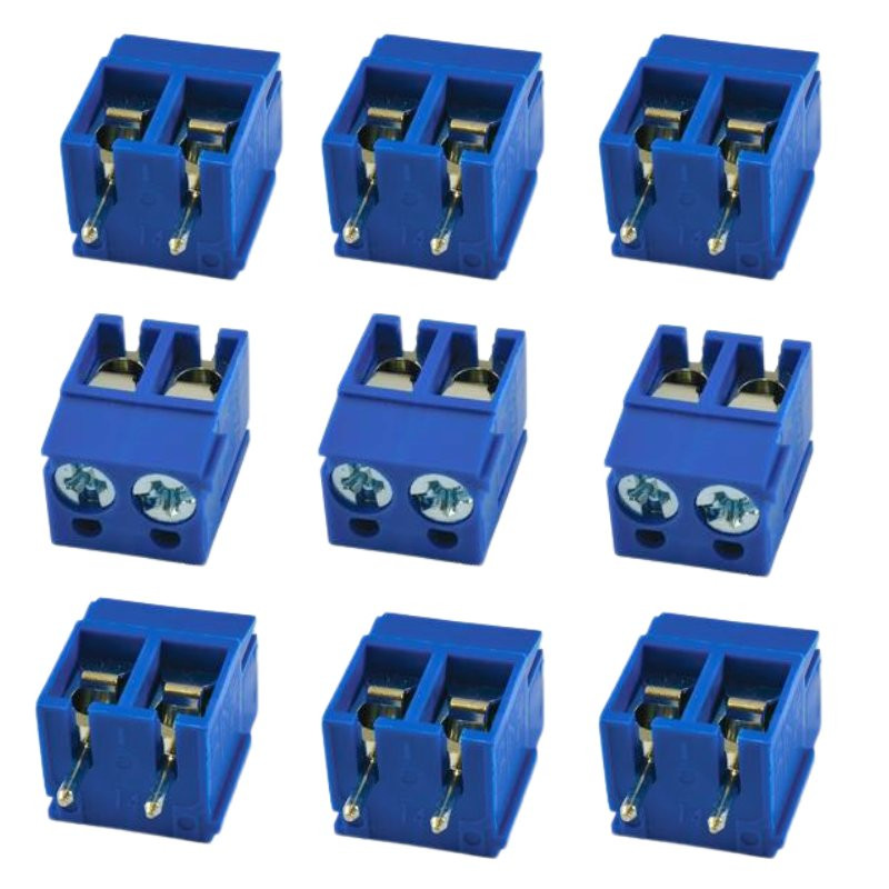 Dwutorowa listwa zaciskowa do montażu przewlekanego na PCB, umożliwiająca solidne i bezpieczne podłączanie przewodów przy pomocy zacisków śrubowych.