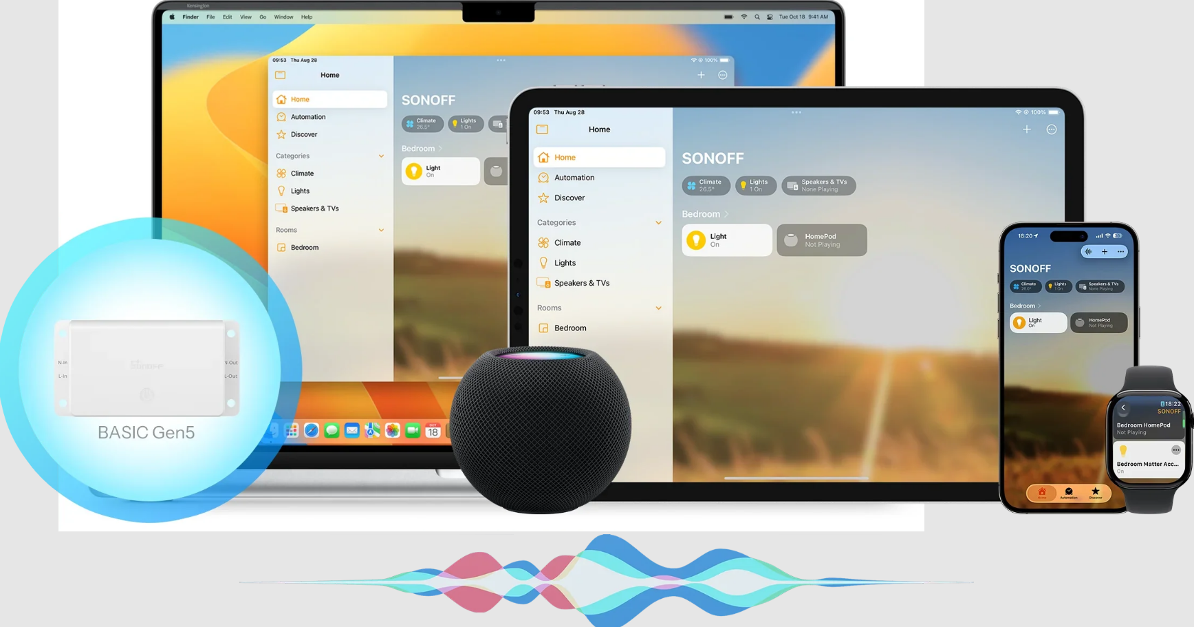 Steruj swoimi urządzeniami za pomocą Siri, ustawiaj automatyzacje z iPhone'a i ciesz się płynną integracją z ekosystemem Apple. W pełni kompatybilne z iPhone'em, HomePodem, iPadem i innymi.
