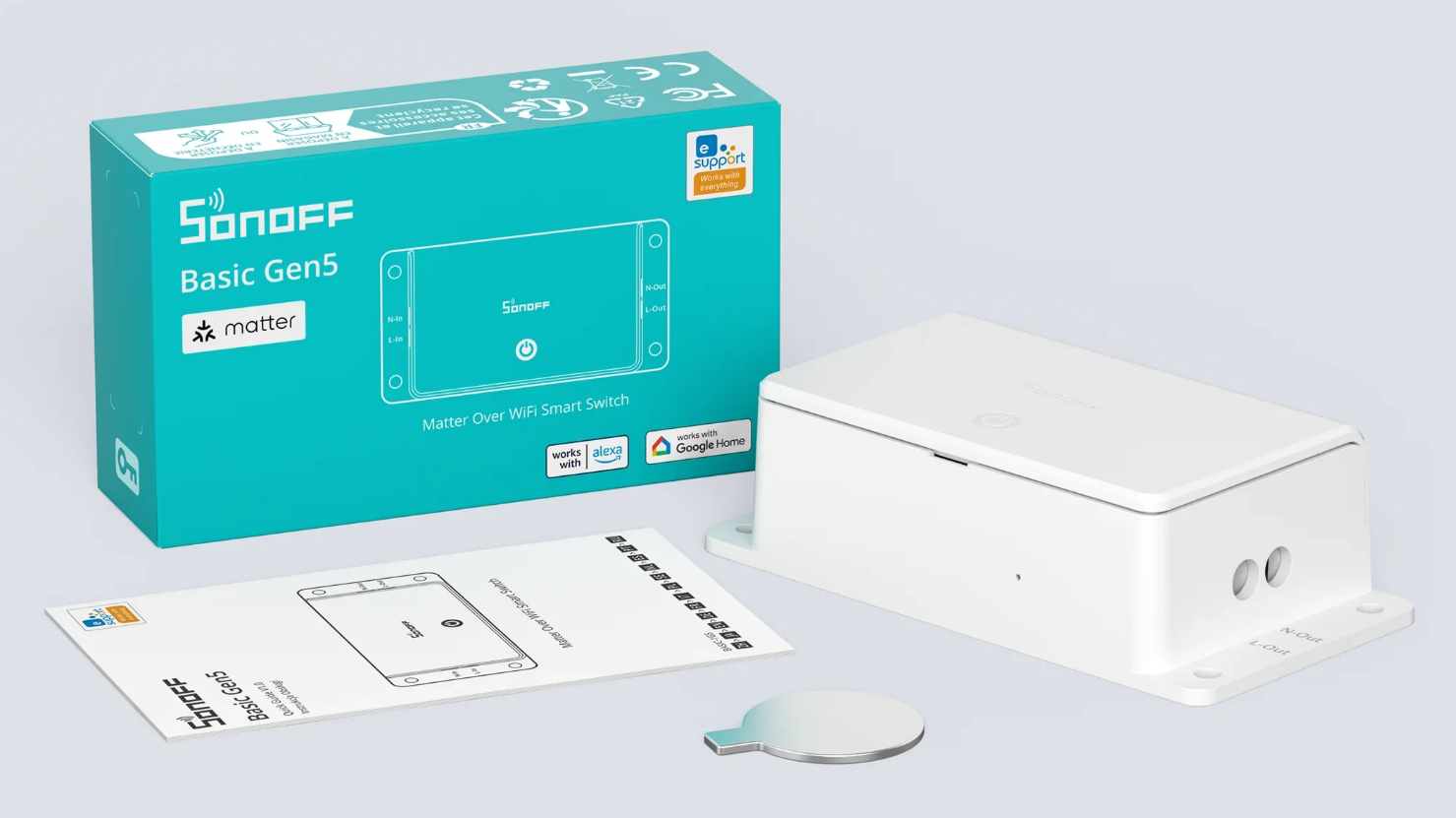 Basic Gen5 to kompaktowy moduł przelotowy inline do sterowania oświetleniem i innymi odbiornikami do 10A. Dzięki wsparciu protokołu Matter bezproblemowo integruje się z najpopularniejszymi ekosystemami.
