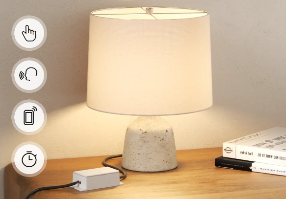Tradycyjny włącznik ścienny nadal działa jak dotychczas, ale moduł pozostaje online. Niezależnie od pozycji przełącznika możesz sterować światłem z aplikacji, głosu lub scen automatyki.