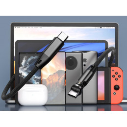 Uniwersalny kabel z obrotową końcówką o długości 100 cm, wyróżnia się ergonomiczną prostotą i wysoką jakością wykonania. Nasz kabel ze złączami USB typ-C w pełni współpracuje ze wszystkimi telefonami, tabletami, nawigacjami GPS i innymi urządzeniami niezależnie od marki.