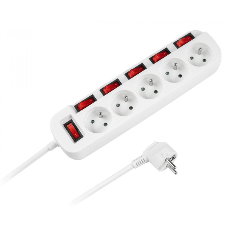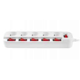 Przedłużacz marki Rebel to praktyczne i bezpieczne rozwiązanie do zasilania wielu urządzeń jednocześnie. Wyposażony w pięć gniazd i aż sześć indywidualnych wyłączników, pozwala na wygodne zarządzanie podłączonym sprzętem.