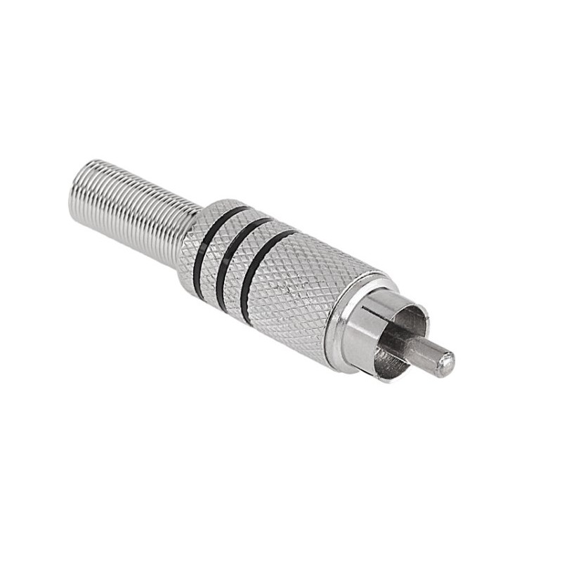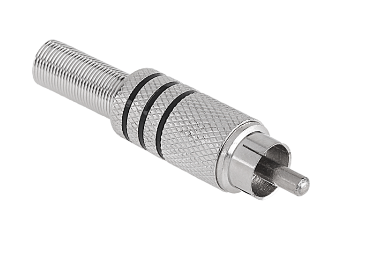 Solidny, precyzyjnie wykonany wtyk RCA przeznaczony do profesjonalnych i domowych zastosowań audio.