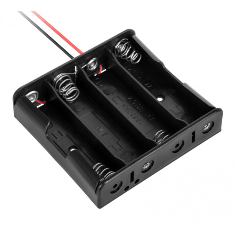 Praktyczny uchwyt na cztery ogniwa 18650 z wyprowadzonym przewodem zasilającym.