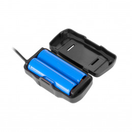Lampa jest zasilana dwoma akumulatorami 3,7 V o pojemności 1500 mAh (typ 18650), które zapewniają do 5 godzin ciągłej pracy. Ładowanie odbywa się przez nowoczesne gniazdo USB-C, co umożliwia szybkie i wygodne doładowanie – czas ładowania wynosi około 8 godzin.