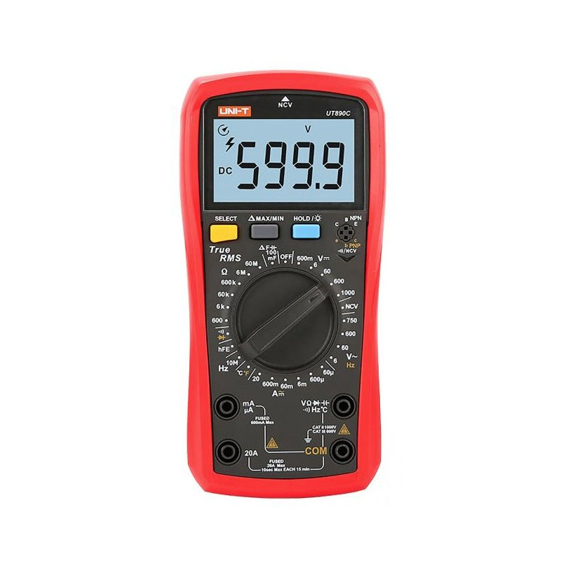 Multimetr cyfrowy UT890C to zaawansowany przyrząd pomiarowy marki UNI-T z funkcją TrueRMS i NCV, który pozwala na precyzyjne pomiary napięcia, prądu, rezystancji, pojemności, częstotliwości i temperatury. Dzięki szerokiemu zakresowi funkcji i solidnej konstrukcji sprawdzi się w pracy elektryków, serwisantów i elektroników hobbystów.