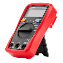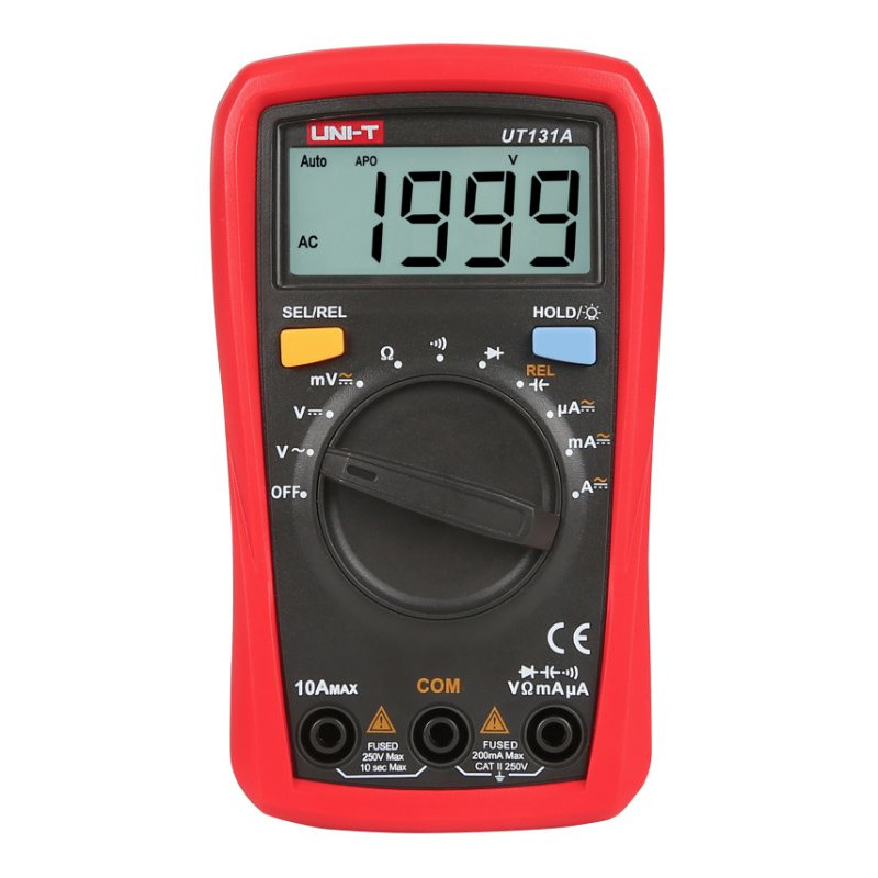 Miernik UT131A marki UNI-T to uniwersalny multimetr cyfrowy do podstawowych pomiarów elektrycznych. Umożliwia pomiar napięcia, prądu, rezystancji i pojemności, a także sprawdzanie ciągłości obwodu i test diod. Dzięki automatycznej zmianie zakresów oraz funkcjom dodatnim, takim jak pomiar względny czy zamrożenie wskazania, urządzenie jest wygodne i proste w obsłudze.