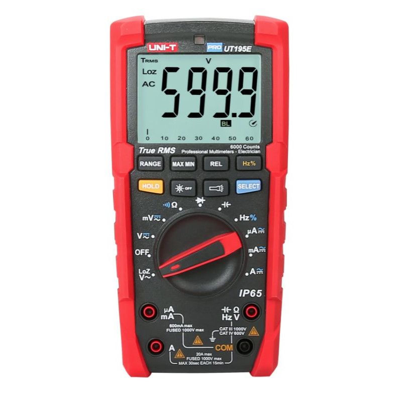 Uni-T UT195E PRO to wytrzymały multimetr uniwersalny zaprojektowany do pracy w wymagających warunkach przemysłowych. Umożliwia precyzyjny pomiar napięcia, prądu, rezystancji oraz wielu innych parametrów elektrycznych. Dzięki funkcji True RMS zapewnia dokładne wyniki także przy pomiarach sygnałów odkształconych, a tryb LoZ eliminuje napięcia pasożytnicze podczas diagnostyki instalacji.