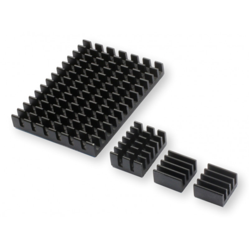 Radiatory aluminiowe do Raspberry Pi 4B - zestaw 4 częściowy (procesor, pamięć, kontroler USB, kontroler LAN)