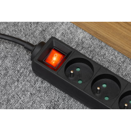 Przedłużacz sieciowy Rebel posiada jeszcze jedną zaletę. Umieszczony na obudowie włącznik pozwala w szybki sposób uruchomić lub wyłączyć urządzenie, gdy zajdzie taka potrzeba.