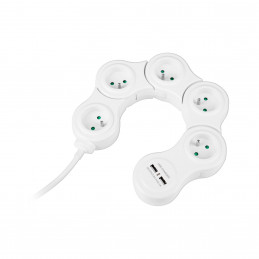 Przedłużacz sieciowy z 3 gniazdami francuskimi i 2 portami USB do ładowania urządzeń