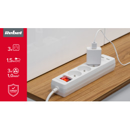 Przedłużacz sieciowy Rebel to doskonałe rozwiązanie do zastosowania np. w gospodarstwie domowym lub biurze. Trzy gniazda typu francuskiego o maksymalnym obciążeniu 2300 W gwarantuje swobodne podłączenie niezbędnych sprzętów.