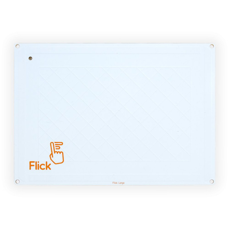 Czujnik można ukryć za nieprzewodzącym materiałem (np. drewnem, akrylem), zachowując pełną funkcjonalność – choć zasięg może się wtedy nieco zmniejszyć. Dostępne biblioteki i instalator ułatwiają szybkie wdrożenie. Flick Large pozwala sterować komputerem, telewizorem, systemem audio i wieloma innymi urządzeniami – jednym ruchem ręki.