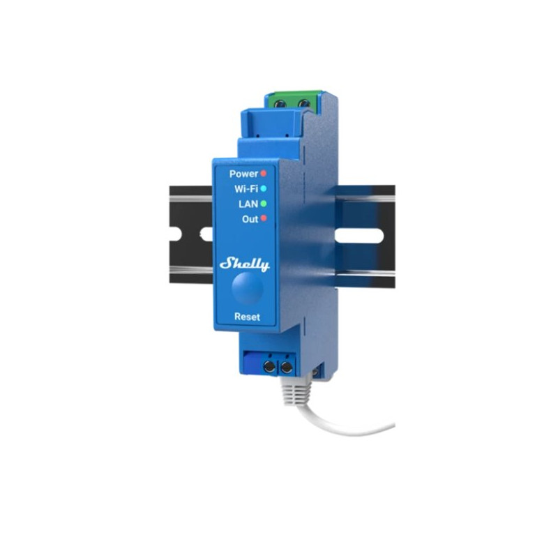 Shelly Pro 1 to 1-kanałowy przełącznik przekaźnikowy na szynę DIN z połączeniem Wi-Fi, LAN i Bluetooth. Jest możliwość montażu na szynie DIN w skrzynce bezpiecznikowej. Posiada ulepszone funkcje bezpieczeństwa i jest kompatybilny z większością używanych platform automatyki domowej.