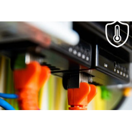 W przypadku niebezpiecznego poziomu temperatury lub gwałtownego jej wzrostu urządzenie wyłącza wyjścia i wysyła powiadomienie. Wewnętrzny czujnik temperatury mierzy ciepło co 100 ms.