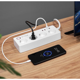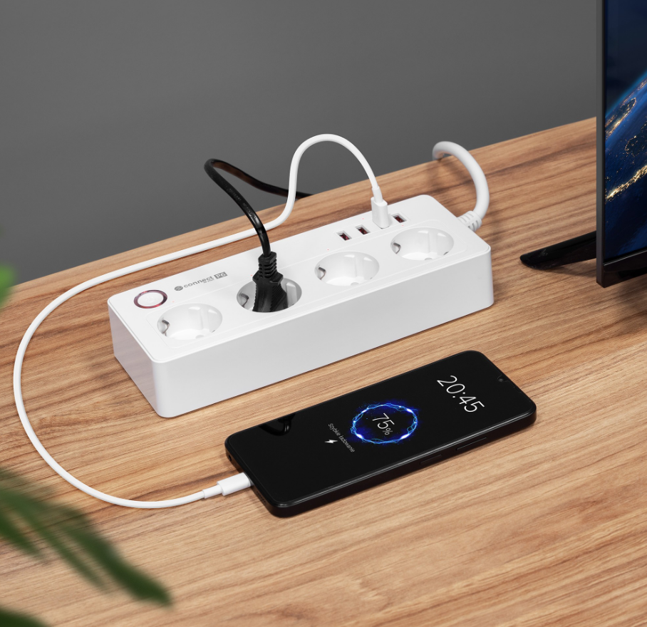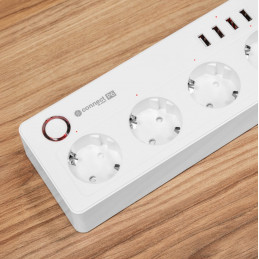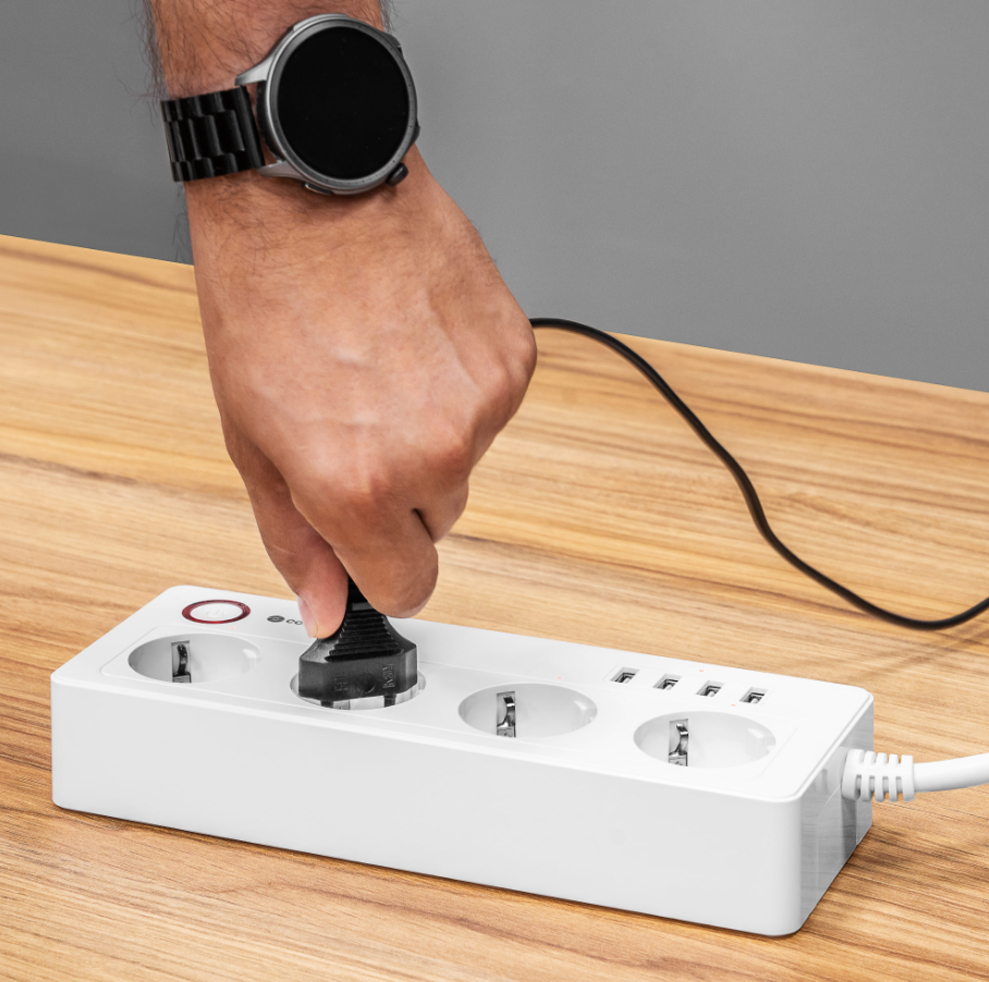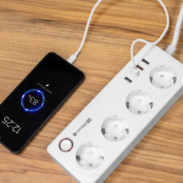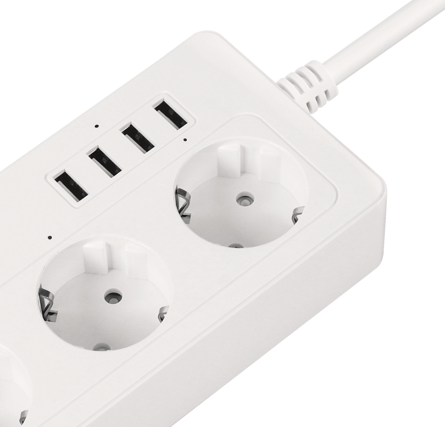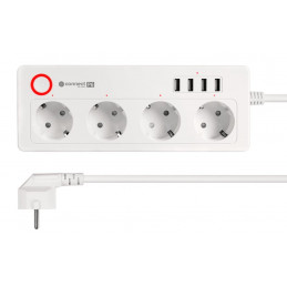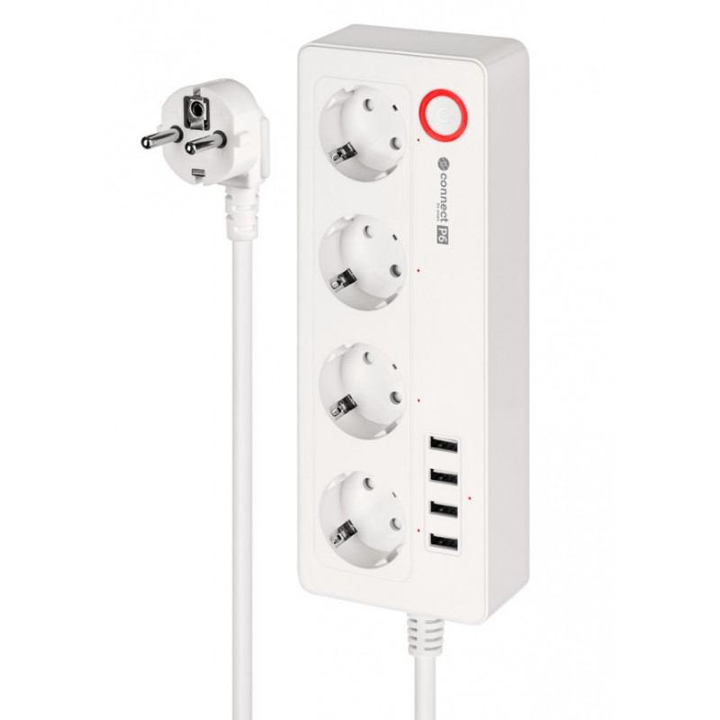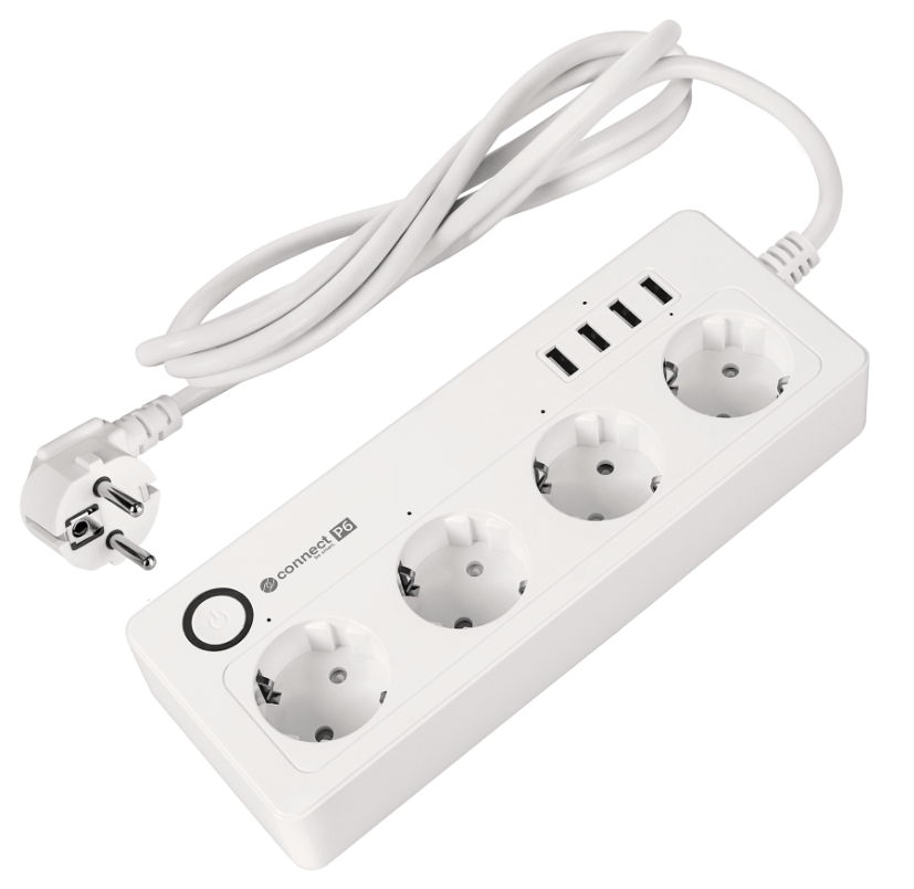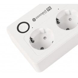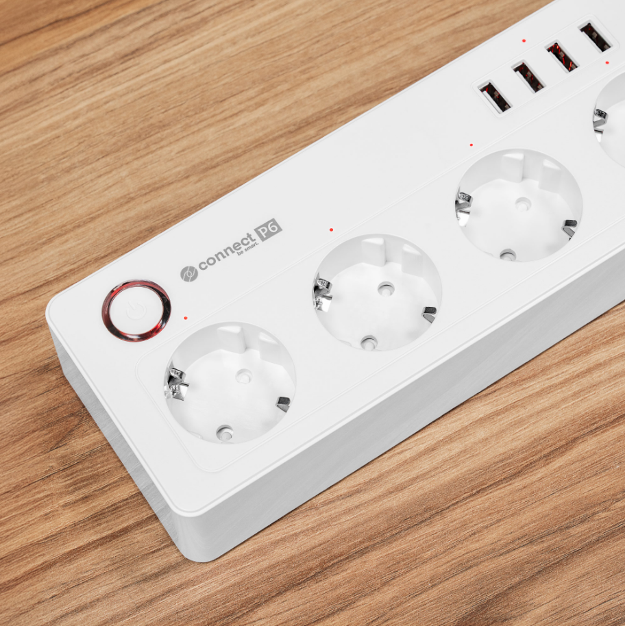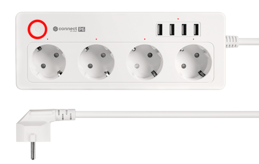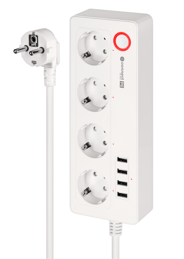 Inteligentny zasilacz wifi Connect P6 wyposażony jest w cztery gniazda typu niemieckiego, które umożliwiają podłączenie różnych urządzeń – od komputerów, przez lampki, po sprzęt RTV. Każde gniazdo możesz włączać i wyłączać osobno, dzięki czemu oszczędzasz energię i zwiększasz bezpieczeństwo.