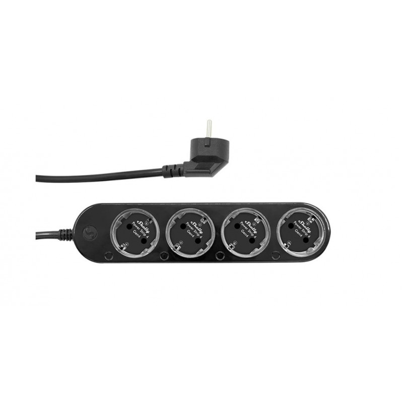 Certyfikowana przez Matter inteligentna listwa zasilająca z 4 gniazdami Schuko, indywidualnym pomiarem energii i kolorową sygnalizacją LED. Kompatybilna z Apple HomeKit, Alexa, Google Home i Shelly Smart Control.