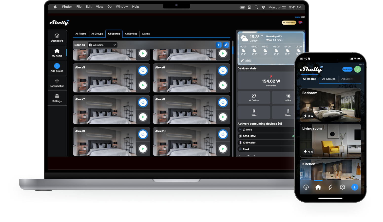 Dzięki integracji z Home Assistant i Shelly Smart Control możesz tworzyć złożone scenariusze automatyki – od klimatyzacji po systemy audio.