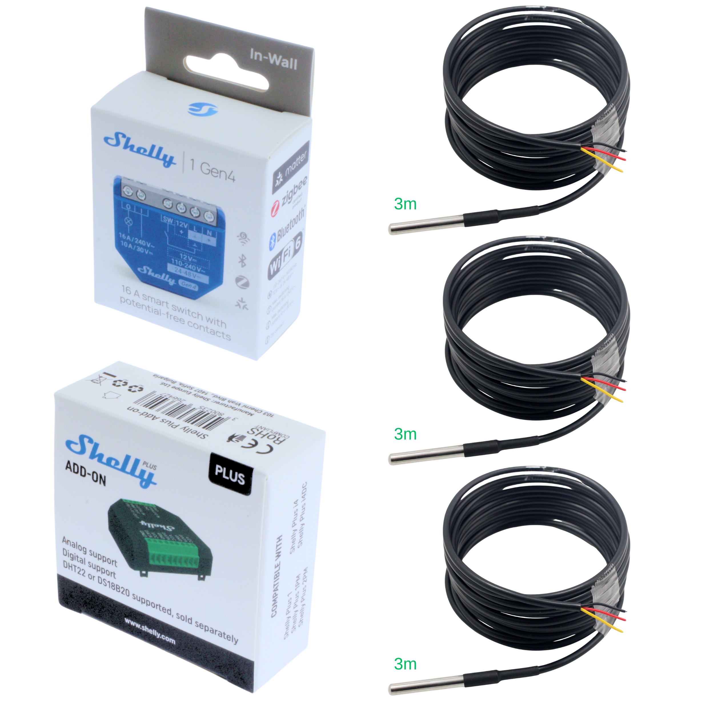 Zestaw pomiarowy Shelly 1 Gen3 do temperatury z modułem Add-on i 2 czujnikami DS18B20