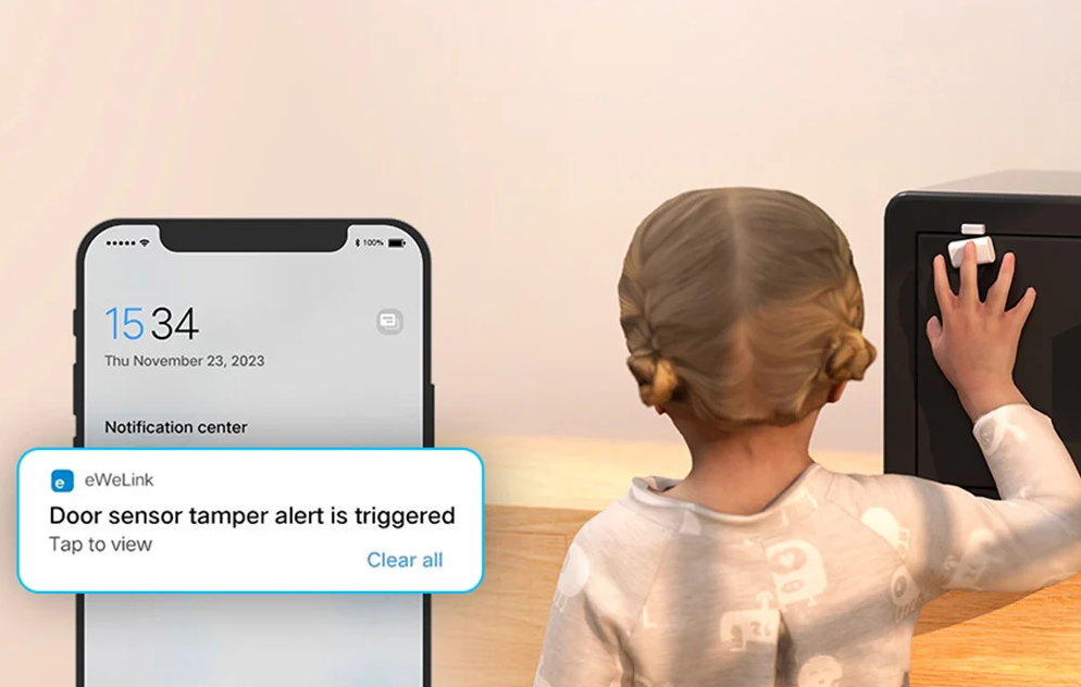 Ciesz się pełną kontrolą. Za każdym razem, gdy ktoś otworzy drzwi lub okno, czujnik natychmiast wyśle Ci powiadomienie na telefon. Dzięki temu zawsze będziesz na bieżąco z sytuacją w Twoim domu, niezależnie od miejsca, w którym się znajdujesz!