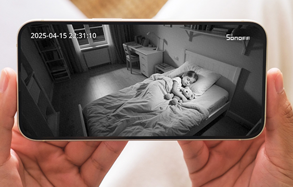 Sonoff CAM-PT2 automatycznie wykrywa ruch i śledzi obiekt, gdy porusza się w polu widzenia kamery. Możesz również ustawić konkretne strefy detekcji w aplikacji, by monitorować tylko te miejsca, które Cię interesują, np. wejście, kanapę czy przestrzeń dla zwierząt. Dzięki podczerwieni 940 nm i opcji widzenia nocnego w kolorze możesz wybrać, czy chcesz oglądać obraz w pełnych kolorach nawet przy słabym oświetleniu, czy w trybie IR, który jest dyskretny i niewidoczny dla oka, idealny do monitorowania śpiących dzieci.
