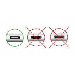 Kabel ze złączem USB typ-C pasuje tylko do urządzeń z tym rodzajem złącza, nie należy go używać w złączach Lightning oraz micro USB.