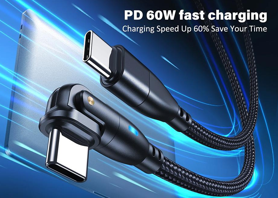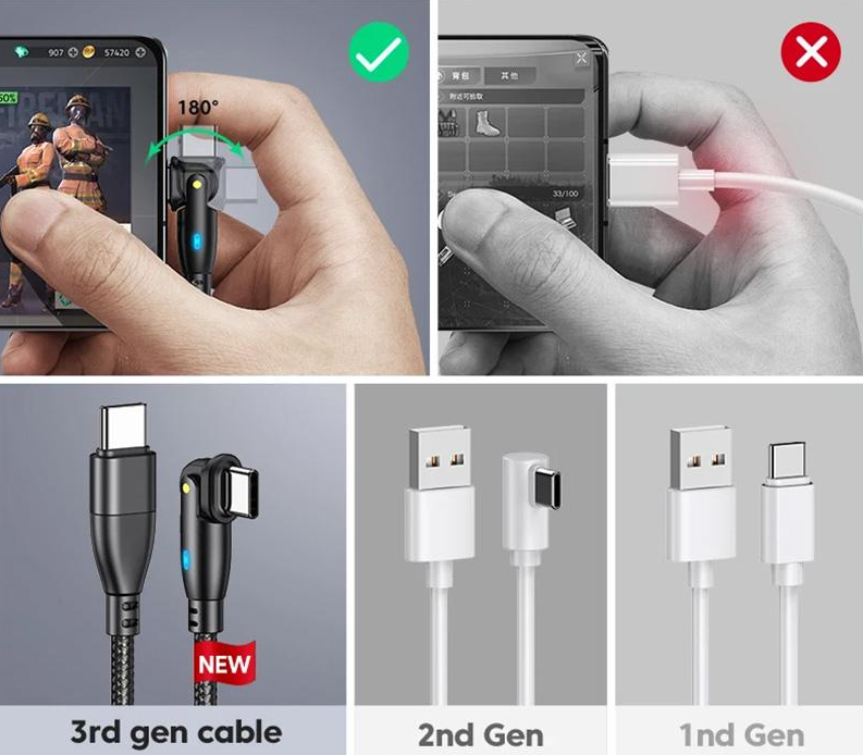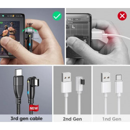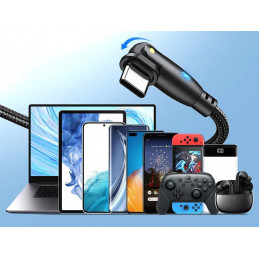 Dzięki rotacyjnej końcówce 180°, kabel można dowolnie ustawić podczas ładowania lub korzystania z telefonu, co eliminuje ryzyko złamania przewodu.