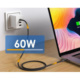 Wzmocniony oplot nylonowy i miedziane przewody gwarantują trwałość nawet przy codziennym użytkowaniu.