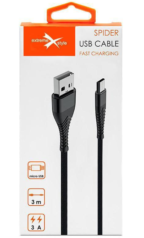 Kabel Spider do telefonów o długości 3 m łączy w sobie elegancki design, niezwykle wytrzymałe materiały oraz wysoce zaawansowany chipset, zapewniający kompatybilność ze wszystkimi urządzeniami elektronicznymi ze złączem micro USB.
