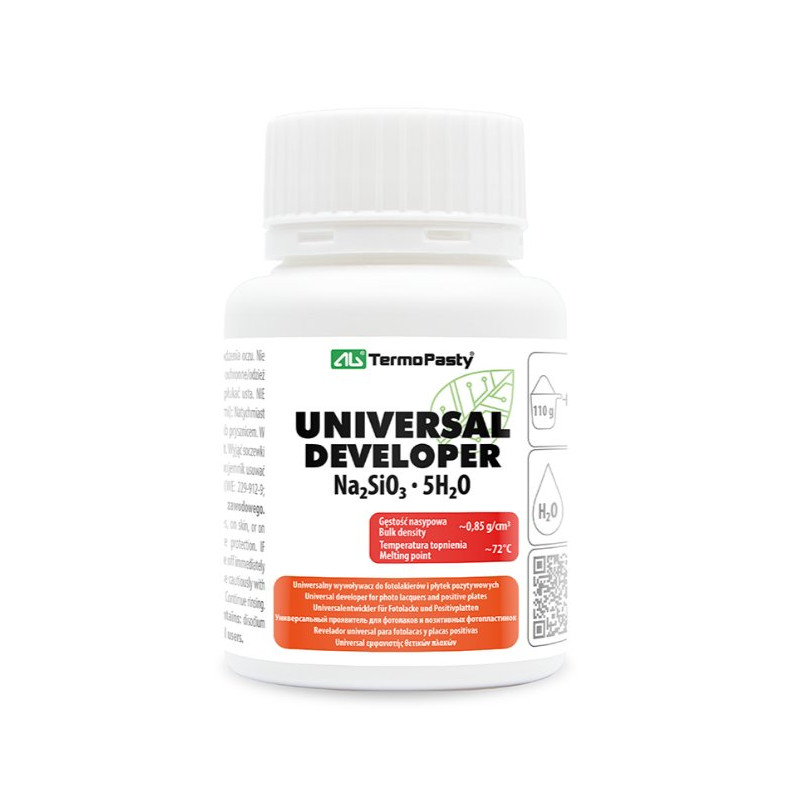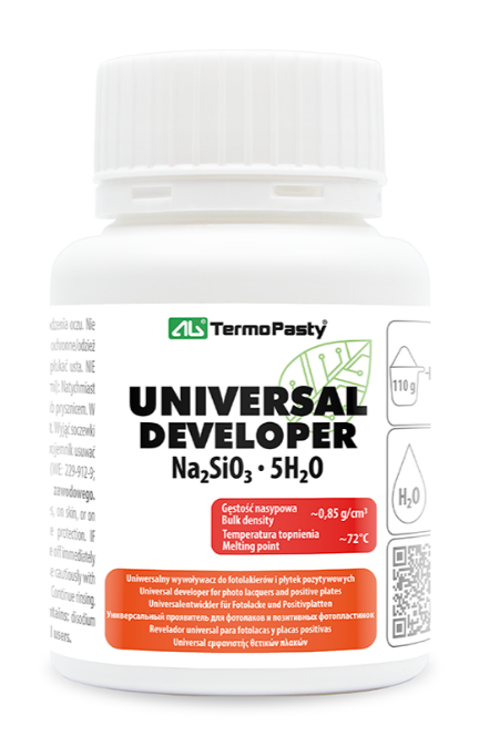 Niezawodne narzędzie do precyzyjnego wywoływania fotolakierów, zdjęć i płytek pozytywowych. Nasz uniwersalny wywoływacz ma wszechstronne zastosowania. Unikalna formuła, pozbawiona wodorotlenku sodu (NaOH), minimalizuje ryzyko podrażnień skóry oraz uszkodzeń delikatnych materiałów. Ten bezpieczny, łagodny środek zapewnia ostre, wyraźne kontury i równomierne działanie, co jest niezbędne w litografii, produkcji PCB czy mikrolitografii. Dzięki stabilności chemicznej i odporności termicznej wywoływacz zachowuje wysoką skuteczność i trwałość nawet w wymagających warunkach. Precyzyjne rezultaty to jego znak rozpoznawczy