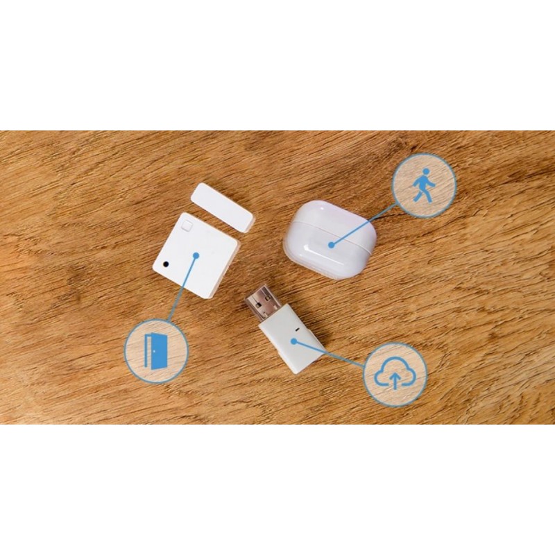 Wykrywa otwarcie/zamknięcie drzwi/okien, mierzy kąt nachylenia i natężenie oświetlenia. Komunikacja Bluetooth