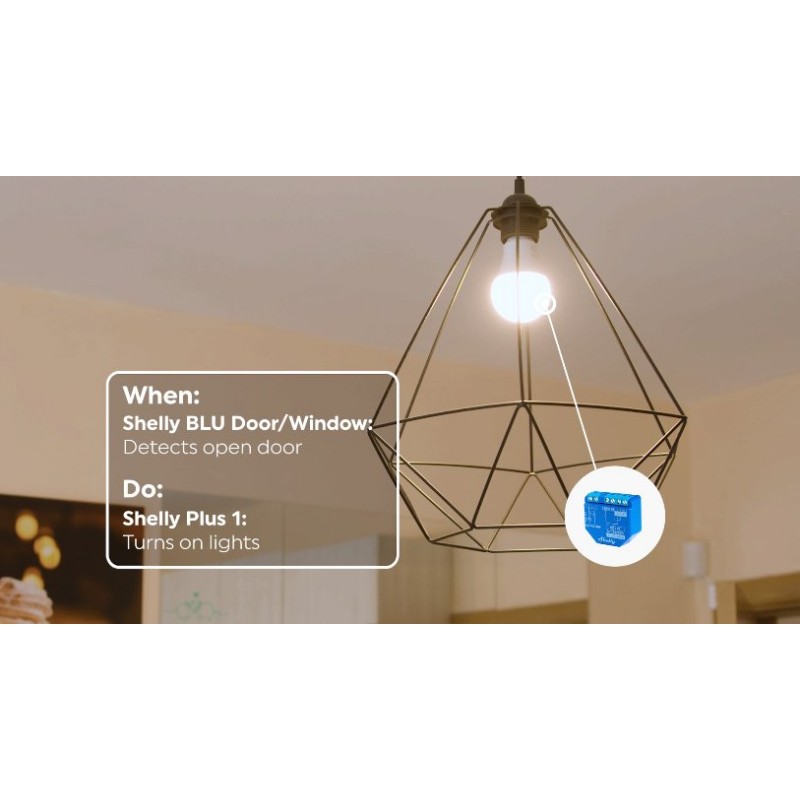 Ustaw Shelly BLU Door/Window tak, aby światło włączało się natychmiast po wejściu do pokoju – nie musisz już szukać włącznika. Po wejściu do środka Shelly BLU Motion przejmuje kontrolę i dba o to, aby w pomieszczeniu było jasno, dopóki nie wyjdziesz. Jeśli do świateł podłączony jest Shelly Dimmer2, ten dynamiczny duet dostosowuje również ich jasność do poziomu naturalnego światła. A kiedy wyjdziesz z pokoju, nie musisz się martwić, czy zostawisz włączone światło – wkrótce się wyłączy, dzięki czemu Twój dom będzie nie tylko bardziej inteligentny, ale także bardziej energooszczędny.